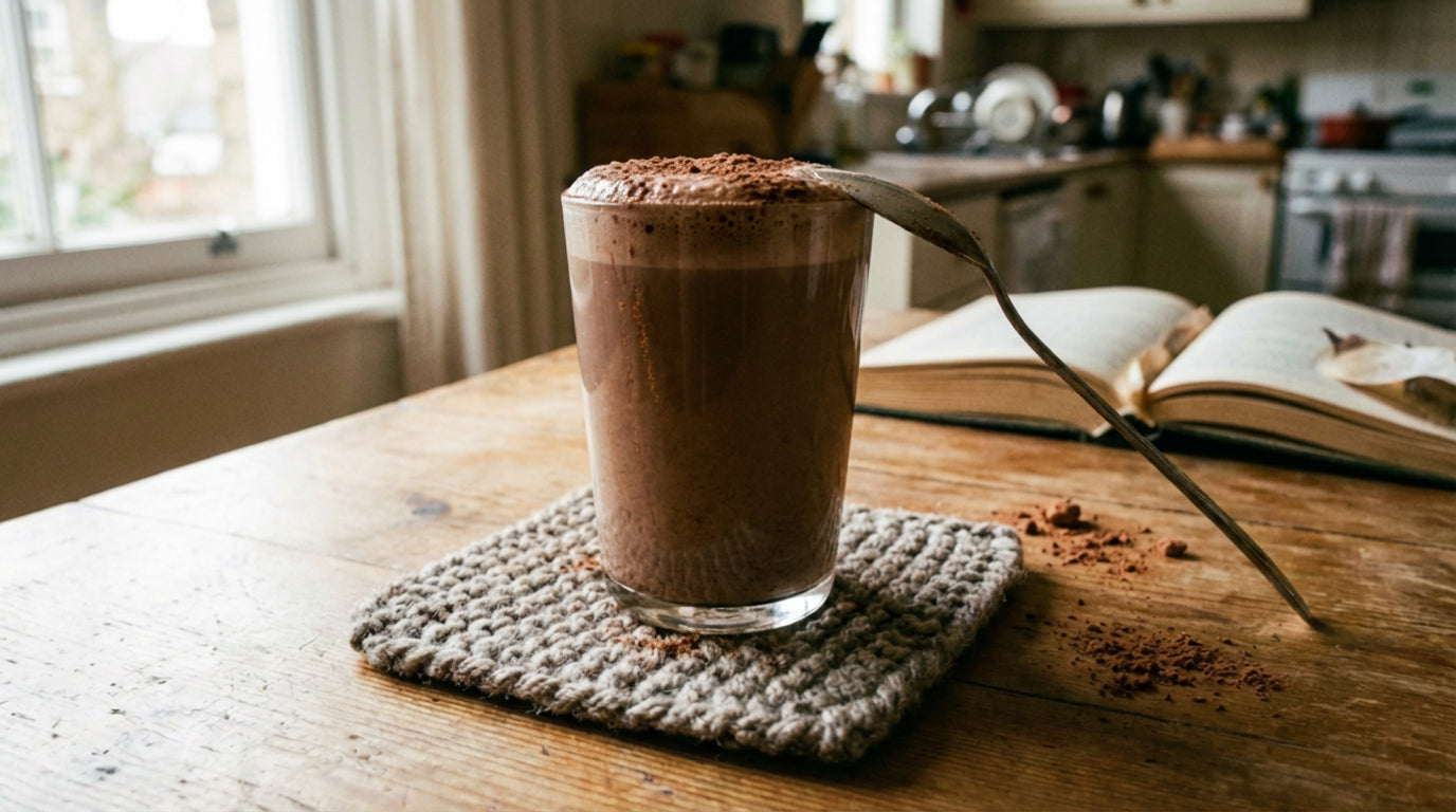 Das Weide Whey Protein 80 Kakao lässt sich gut in Wasser oder Milch in einem Protein Shakerbecher oder Mixer auflösen.