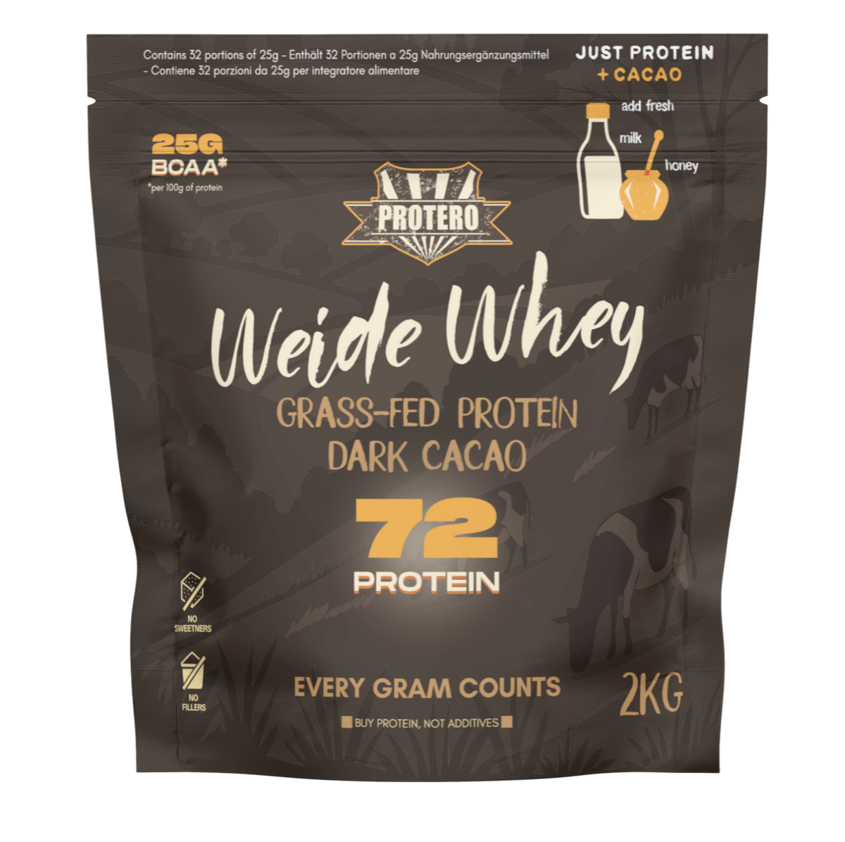 GRASS-FED WHEY PROTEIN AUS ECHTER WEIDEMILCH MIT ROHKAKAO GEMISCHT ZUM SELBER SÜSSEN